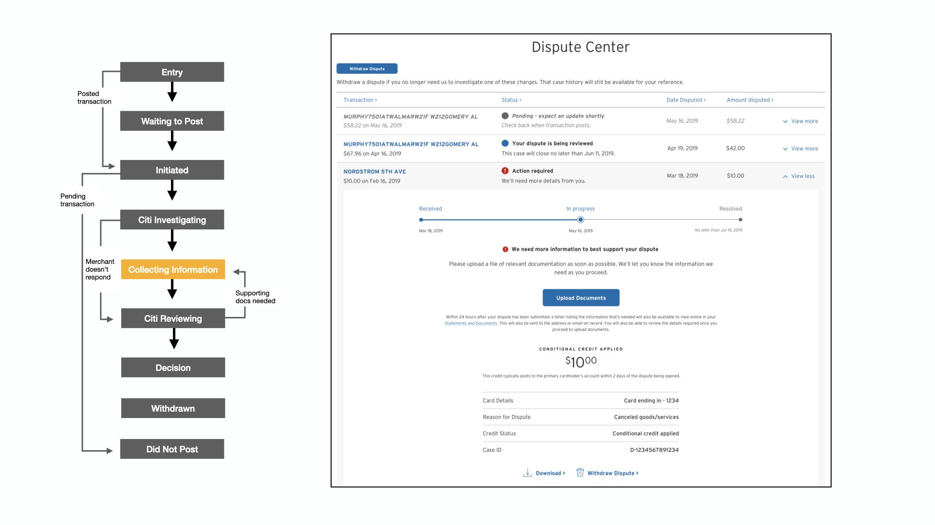 Due to regulatory changes, we needed to add some functionality to the Dispute Center as a stepping stone while we prepared to fully redesign the experience.