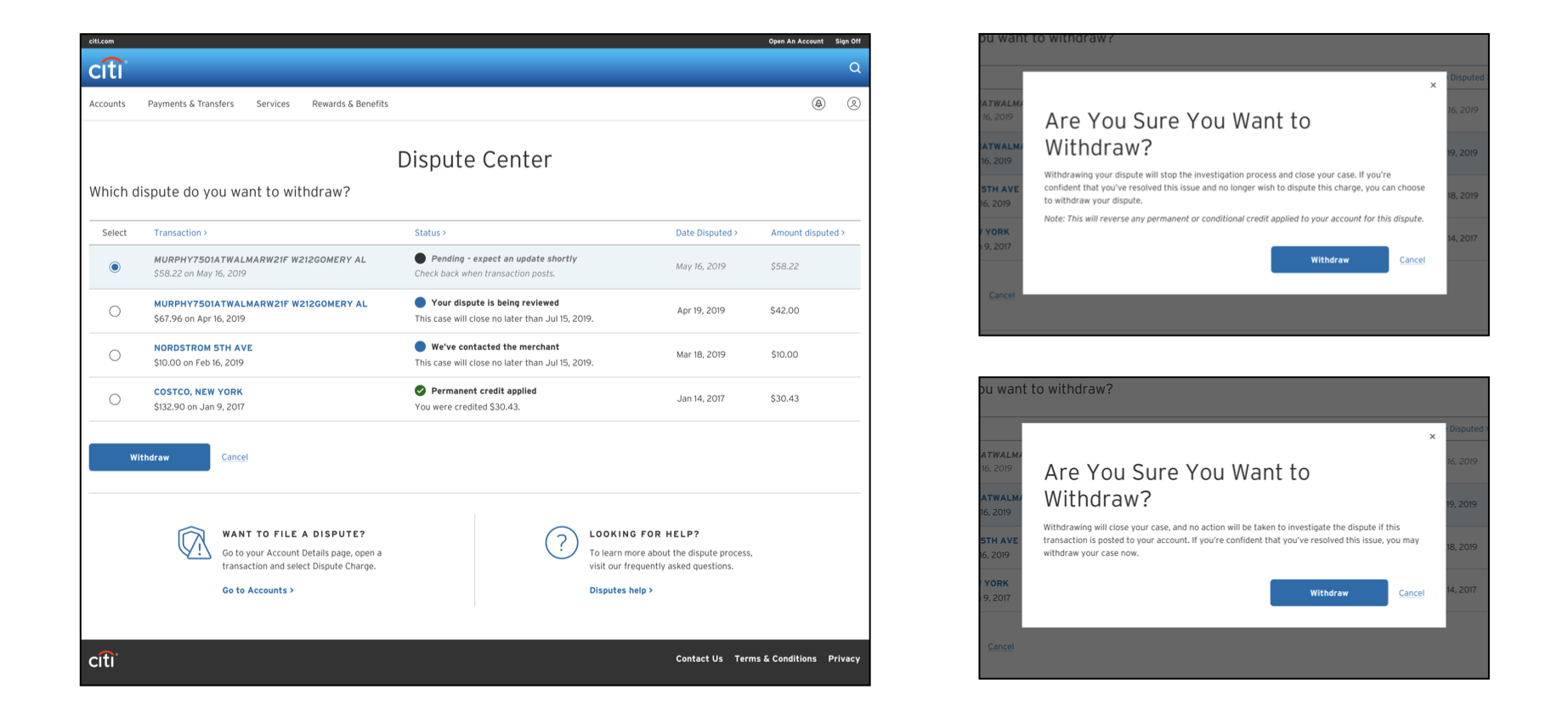 Citi - Disputes Center Redesign